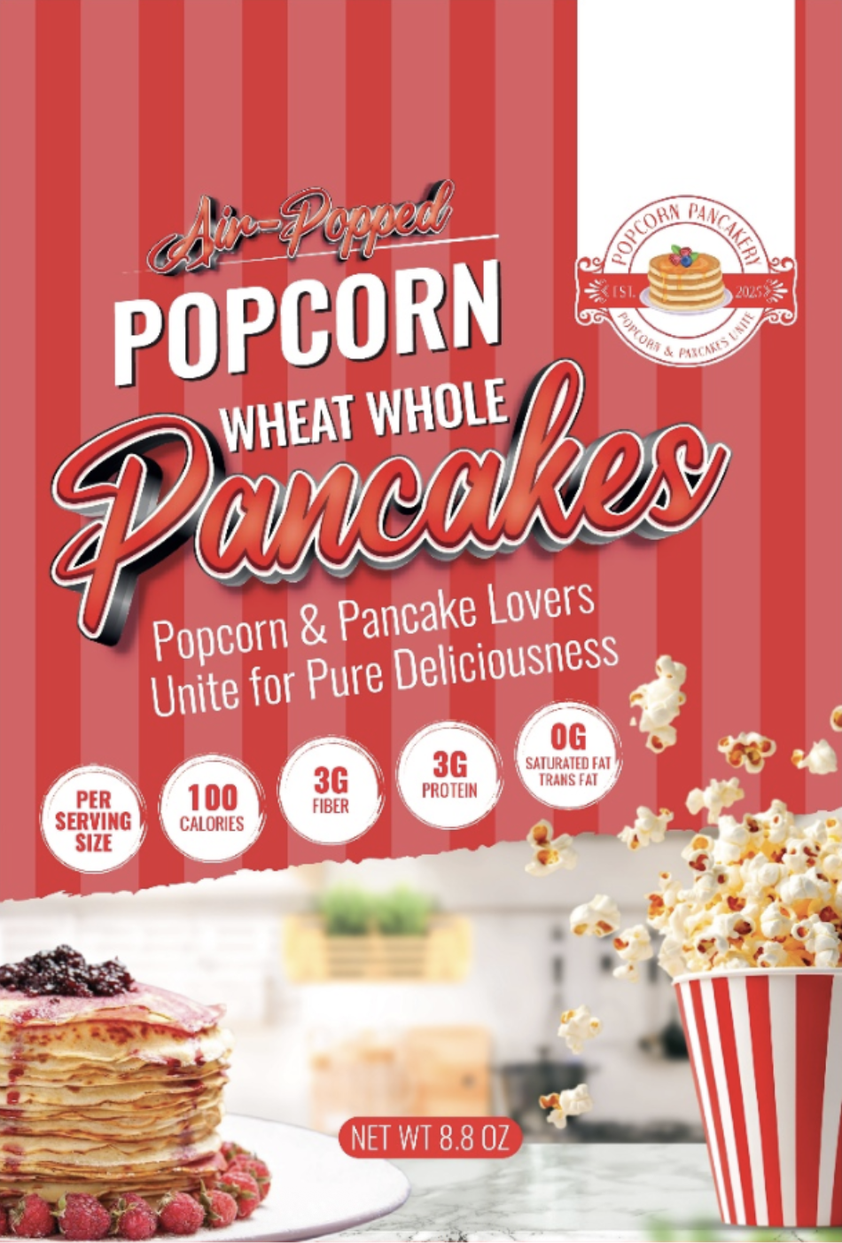 Transforming air-popped popcorn into usable flour wasn’t just a quirky idea—it was a real challenge. The process was messy, the results inconsistent, and the texture tricky. But Derwin was obsessed with perfecting it. Batch after batch, tweak after tweak, he kept pushing until the popcorn flour was just right—light, nutritious, and rich with flavor. And when the first pancake flipped with that perfect pop and fluff, He couldn’t wait to share it with the world.